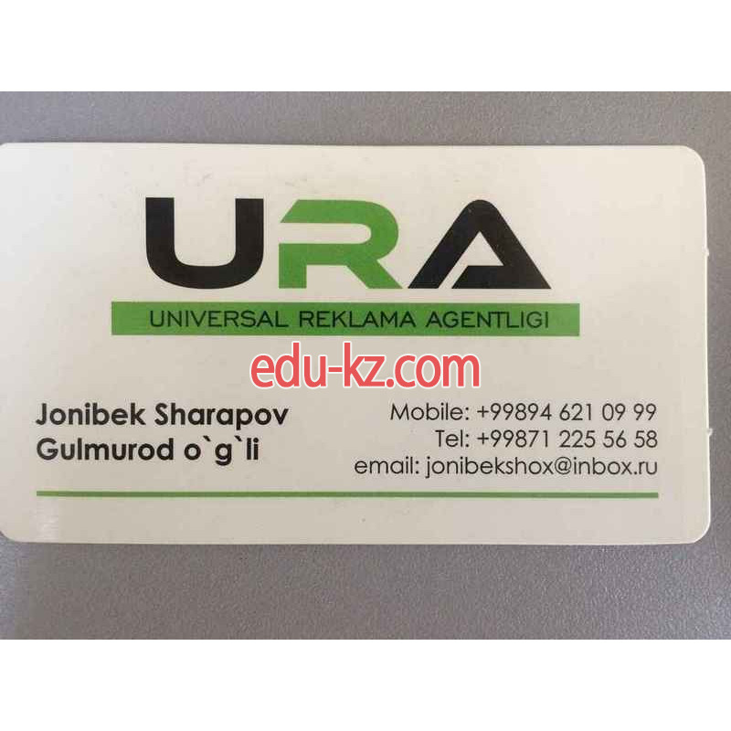 Всю информацию в категории Полиграфия, Реклама, рейтинг и отзывы о компании Полиграфические услуги - Universal Reklama Agentligi Вы найдете на информационном бизнес портале Узбекистана.
